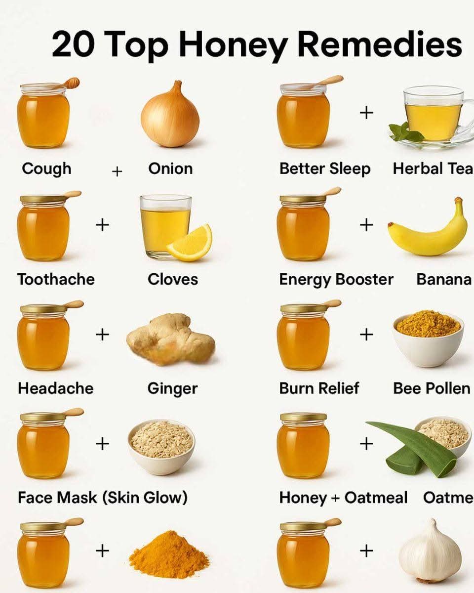Honey is one of the best natural remedies used for centuries in traditional medicine. Rich in antioxidants, enzymes, vitamins, and minerals, honey supports the immune system, improves digestion, boosts energy, and promotes healthy skin and hair. In this article, you will discover 20 top honey remedies that can naturally improve your health and wellness.