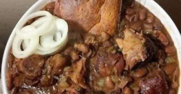 PINTO BEANS WITH HAM HOCKS, CORNBREAD & PICKLED ONIONS