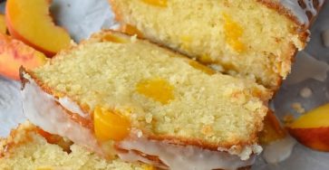 Moist Peach Loaf Cake with Vanilla Glaze