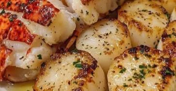 Description This luxurious seafood dish brings together tender lobster tails and perfectly seared scallops, all coated in a rich garlic…