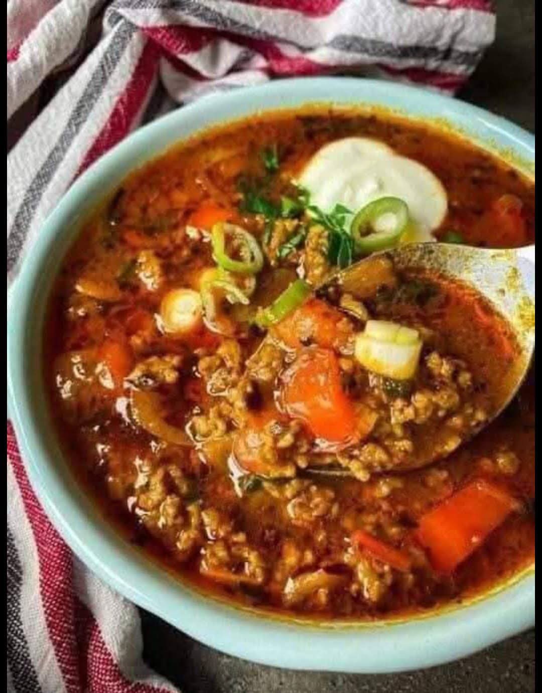 This Cheesy Taco Soup combines all the bold flavors of tacos with a rich, creamy base. Ground beef, tomatoes, spices, and cheese come together in a flavorful broth that’s satisfying, comforting, and easy to make. Optional toppings like cilantro and green onions elevate the dish, making it a crowd-pleaser for families and friends.
