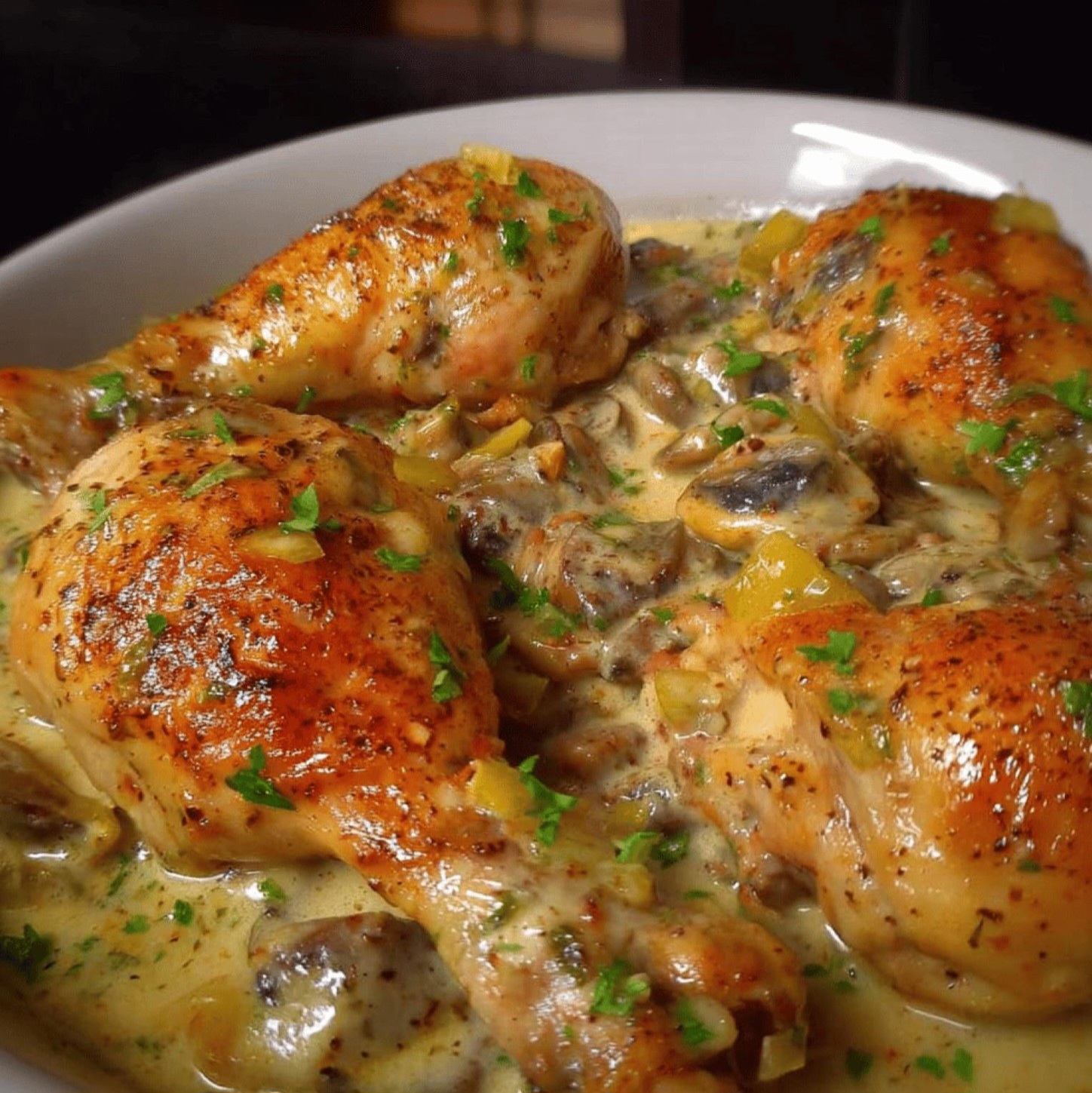 This Creamy Baked Chicken with Mushroom Sauce is a comforting, oven-baked dish featuring juicy chicken legs smothered in a rich, savory mushroom cream sauce. Simple ingredients and an easy method make it perfect for a satisfying family dinner.