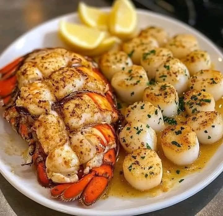 This dish looks and tastes like fine dining but comes together quickly at home. The lobster is juicy and flavorful, the scallops are golden on the outside and tender inside, and the garlic butter ties everything together into one unforgettable plate.
