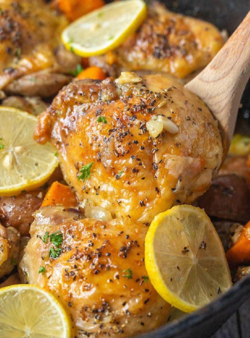 Roasted chicken recipes are among the most popular and profitable food keywords because they are versatile, nutritious, and beginner-friendly. Lemon garlic chicken delivers a balance of tangy citrus, aromatic garlic, and fresh herbs, resulting in a dish that feels elegant yet requires minimal effort. With roasted carrots, potatoes, and onions, it also eliminates the need for multiple side dishes, making it a convenient one-pan dinner.