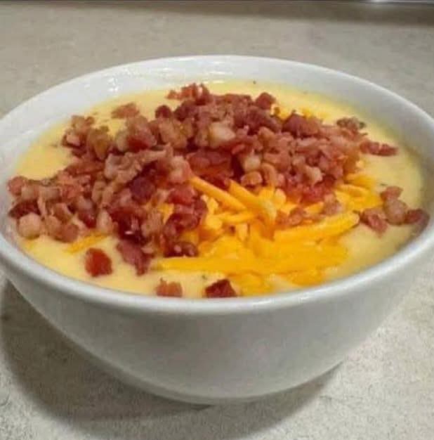 Serve in bowls topped with shredded cheddar, crispy bacon bits, and a dollop of sour cream for the full loaded baked potato experience. Pair with warm bread or a side salad for a complete meal.