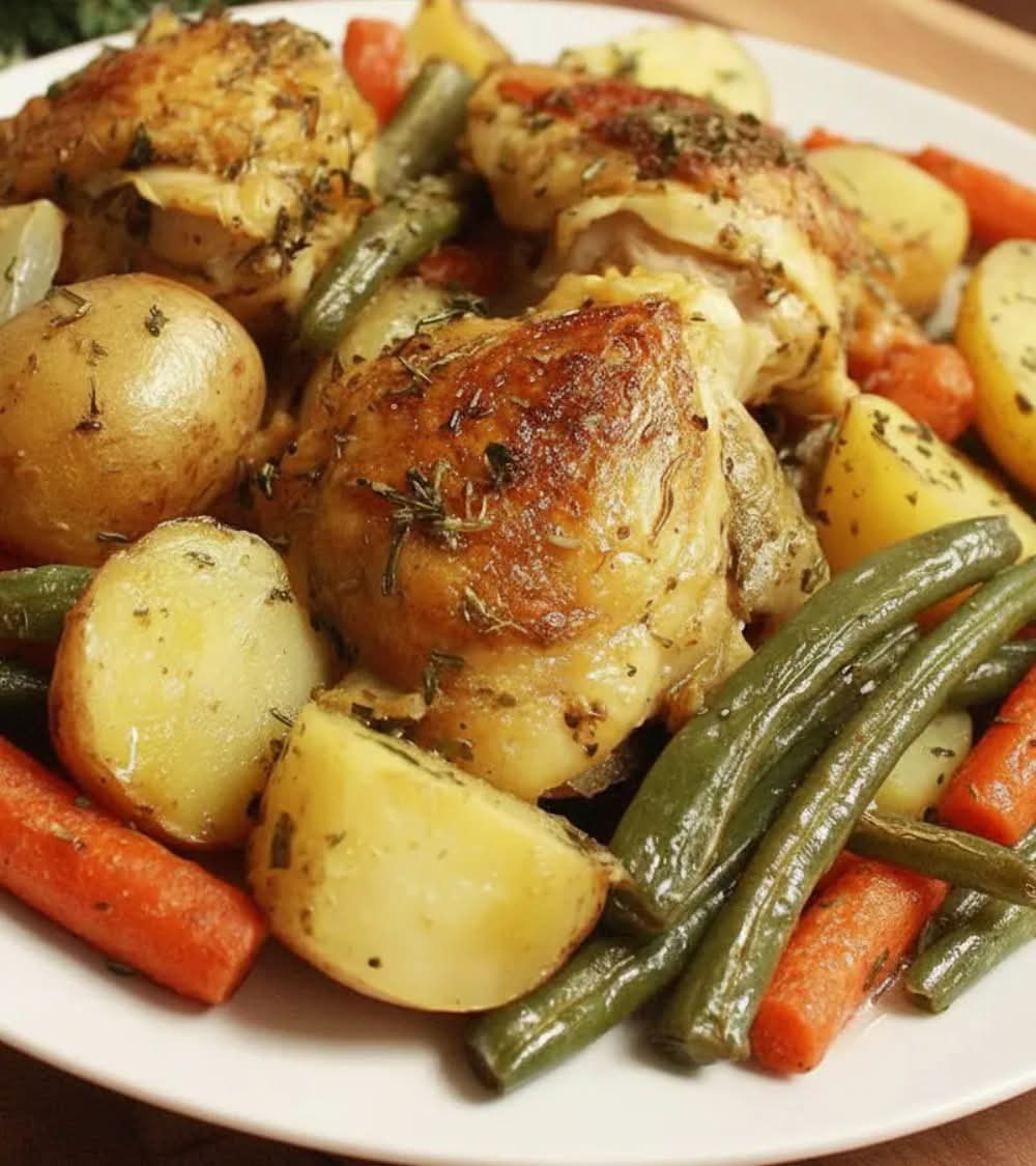 Golden, juicy chicken nestled with tender potatoes, carrots, and green beans in a savory herb-garlic butter sauce. This One-Pot Chicken and Vegetables delivers a complete, comforting dinner with minimal prep and even less cleanup—perfect for busy weeknights.