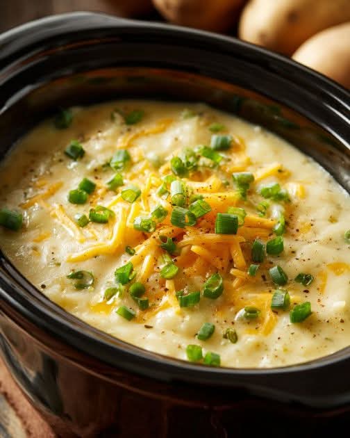Cover and cook on LOW for 6–8 hours or on HIGH for 3–4 hours, until the potatoes are very tender and easily pierced with a fork.