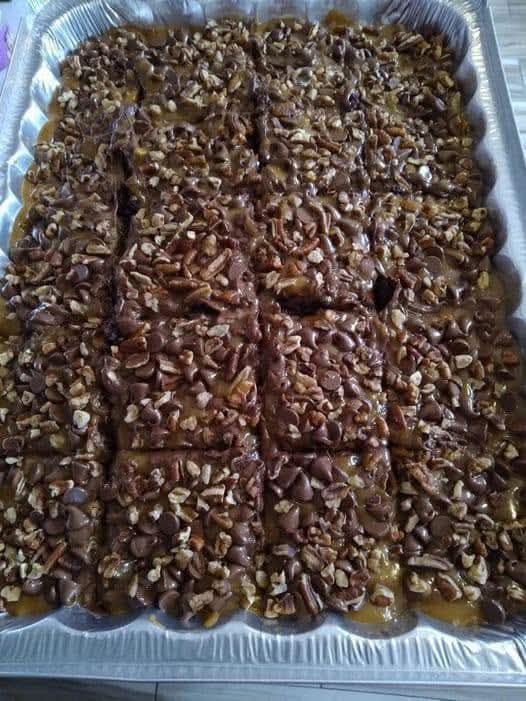 The caramel stays soft, the pecans add crunch, and the chocolate chips melt into the cake—every slice feels like pure indulgence.